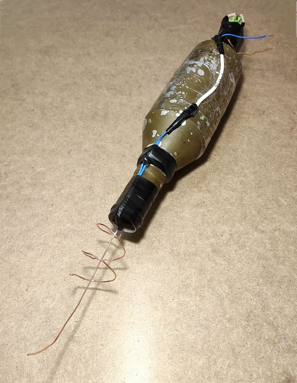 Макет кумулятивного боеприпаса для ударного дрона (квадрокоптера).