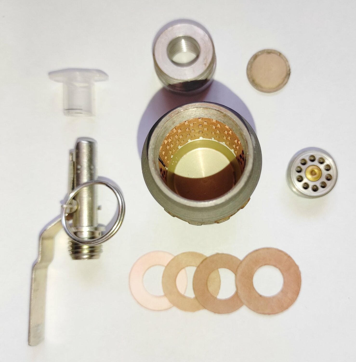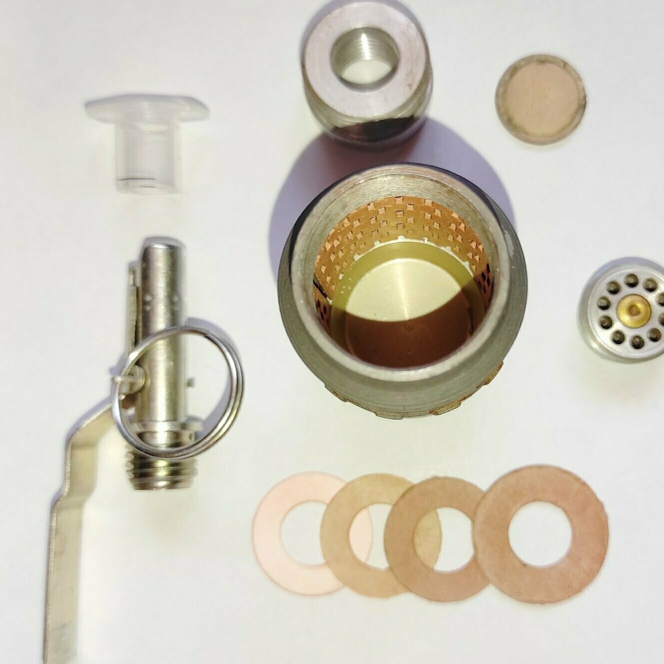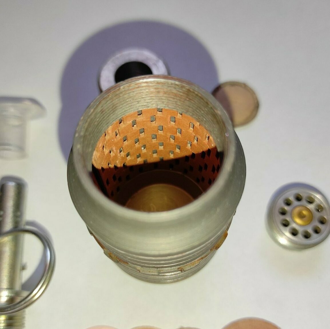 Макет гранаты "Хаттабка" из гранатомётного выстрела ВОГ-25. Деактив, не из инертного. Вещь нечастая. Запал УЗРГМ-2 - деактив. Сохранены оригинальные картонные прокладки и внутренняя рубашка. Всё полностью разборное.